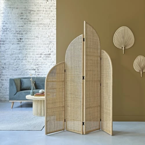 Maisons Du Monde Paravents Paravent En Velours Et En Bois De Pin Imprimé Végétal Multicolore