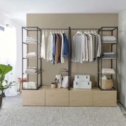Mob In Valets De Nuits Et Portants Dressing Ouvert Modulable Avec Tiroirs Effet Bois Clair
