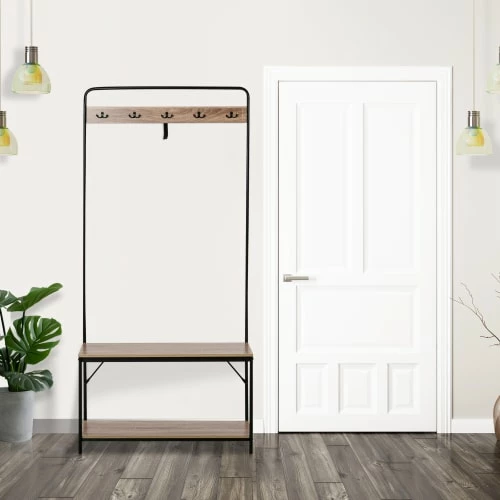 – Meuble à chaussures, porte-manteaux et banc 3 en 1