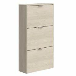 Le Placard à chaussures 3 tiroirs modèle Rubi est idéal pour ranger jusqu’à 18 paires de chaussures ; Il dispose de 3 larges portes, vous pouvez placer ce meuble à chaussures dans votre chambre, dressing ou couloir pour égayer la pièce.