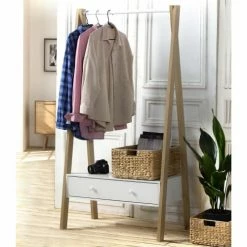 Casâme Valets De Nuits Et Portants Penderie Portant En Bois Avec Tiroir – Blanc