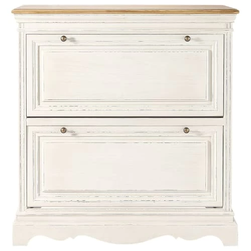 Un petit air de campagne flotte dans votre entrée avec le meuble à chaussures crème LEONTINE. Travaillé avec une patine au coloris doux, ce meuble de rangementsaura se rendre indispensable. Avec sa structure en pin massif, cemeuble de style authentiquevous offre deux beaux espace pour ranger votre précieuse collection de chaussures. A l’entrée ou dans votre chambre, il s’intègrera gracieusement à votre intérieur !