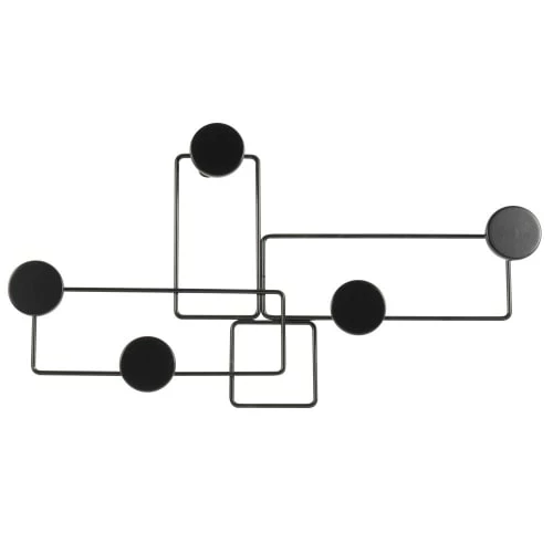 Maisons Du Monde Portemanteaux Et Patères Patère 6 Crochets En Métal Noir Et Bois Hévéa