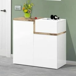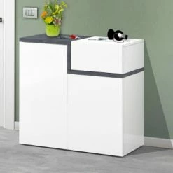 Dmora Meubles D’entrée Et à Chaussures Meuble à Chaussures Moderne Effet Bois Blanc Brillant