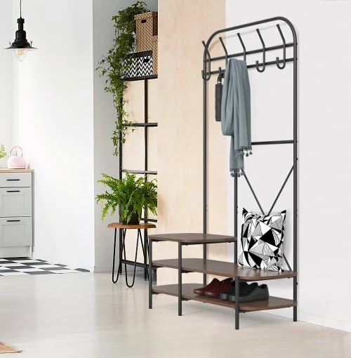 Maisons Du Monde Portemanteaux Et Patères Patère 6 Crochets En Métal Noir Et Bois Hévéa