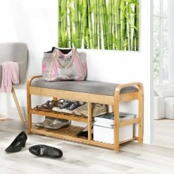 Casâme Meubles D’entrée Et à Chaussures Banc à Chaussures Avec 2 Étagères L100 Cm – Beige Et Gris