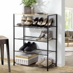 Casâme Meubles D’entrée Et à Chaussures Etagère à Chaussures 5 Niveaux En Métal Noir
