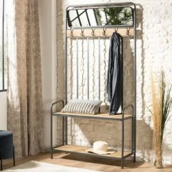 MACABANE Portemanteaux Et Patères Meuble D’entrĂ©e Porte-manteau Miroir 2 Ă©tagères Sapin MĂ©tal