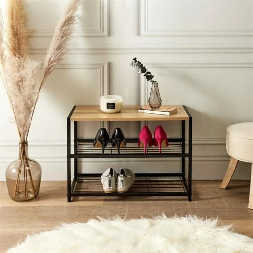 Baita Meubles D’entrée Et à Chaussures Meuble à Chaussures Cannage Rotin 3 Portes 60cm Bois Clair
