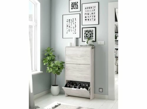 Dmora Meubles D’entrée Et à Chaussures Meuble D’entrée Effet Bois Blanc Brillant